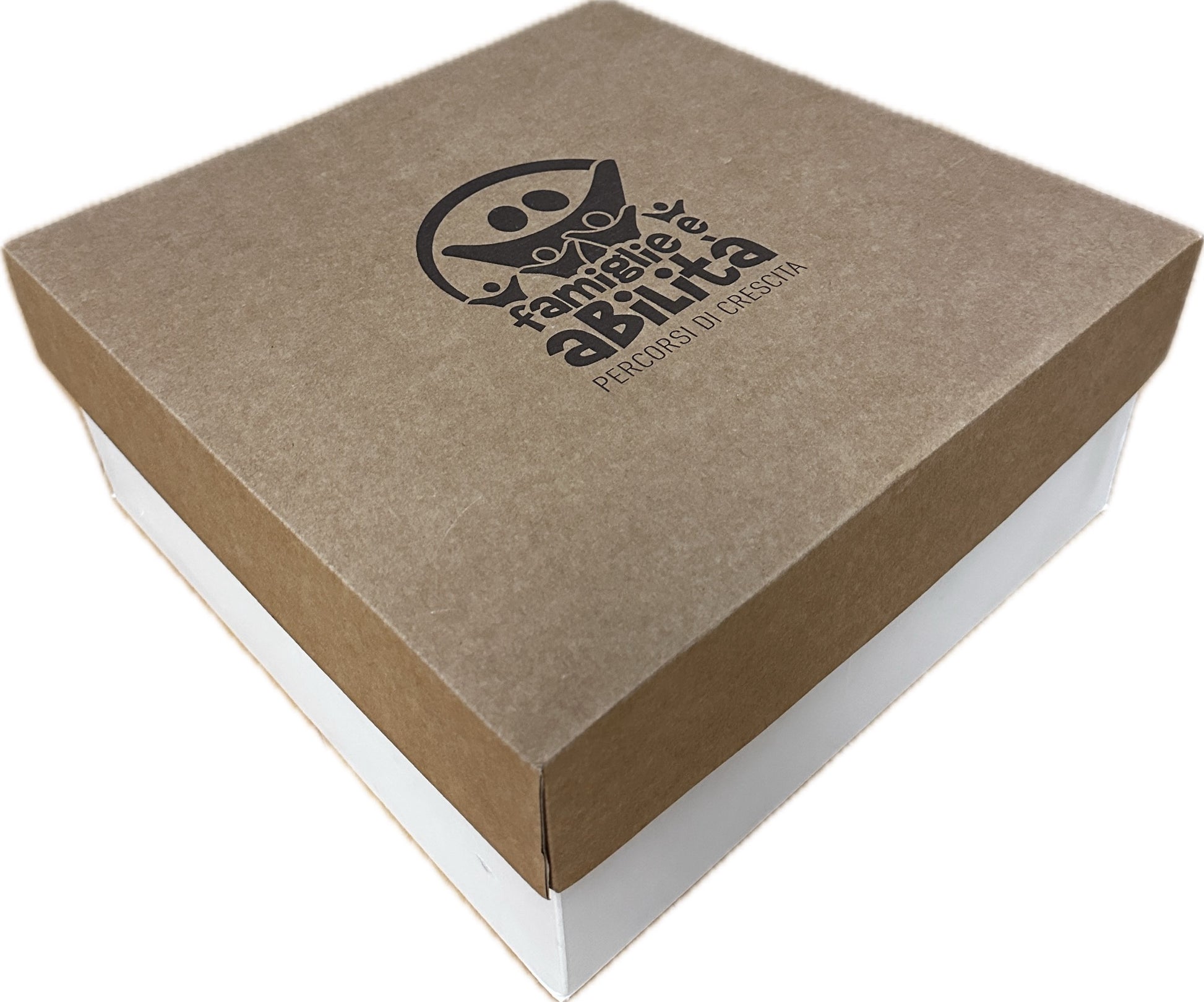 Cofanetto in cartone marchiato Famiglie e Abilità e all’interno depliant illustrativo del progetto sostenuto