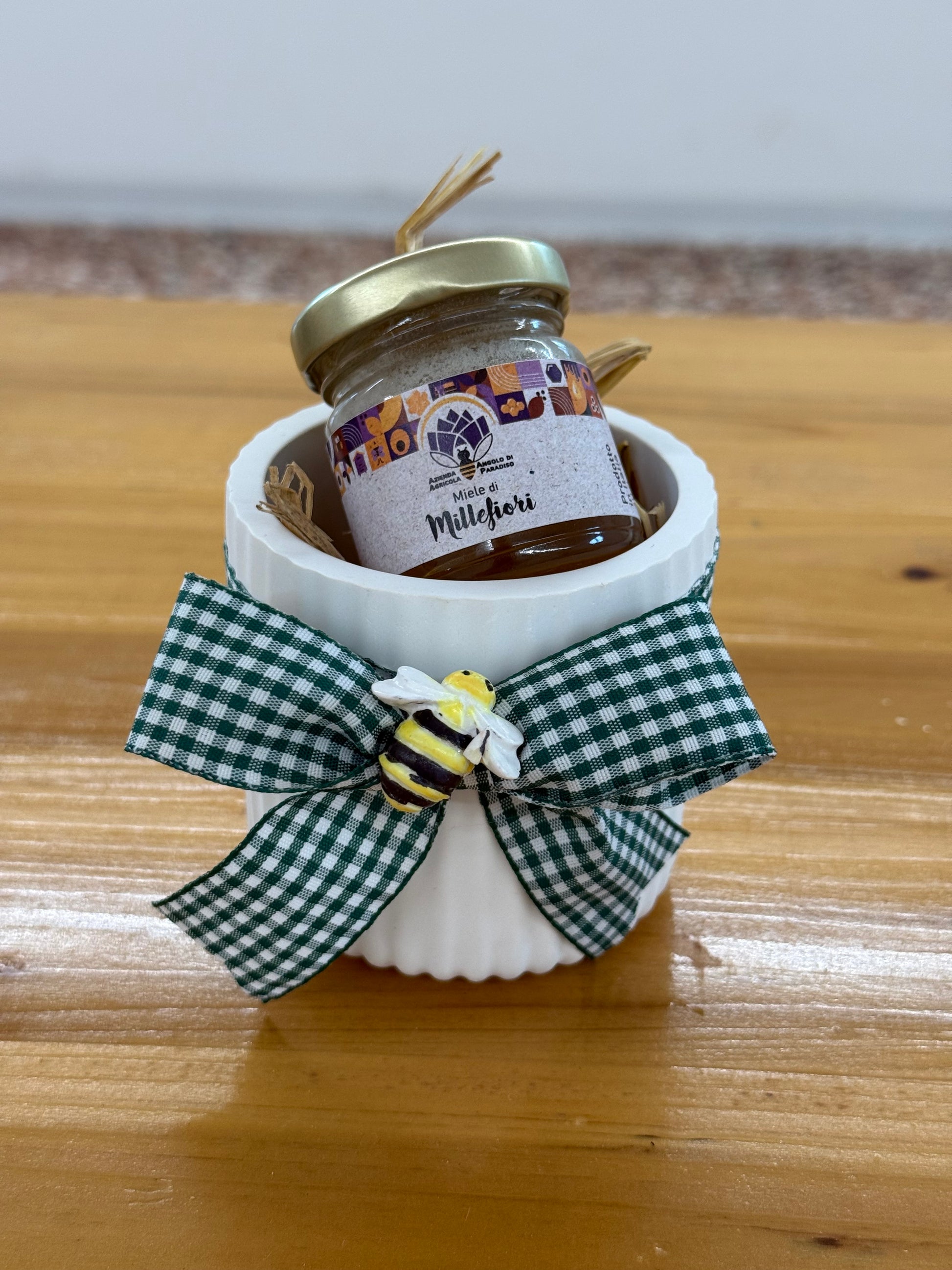 Vasetto in gesso decorato a mano e confezione di miele (40g)